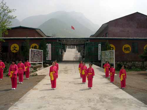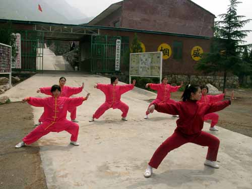 Unmittelbar daneben befindet sich die Kungfu-Schule des Klosters. In dieser Schule leben und trainieren nur Mädchen und Frauen. Neben ihrer Kungfu-Ausbildung werden sie auch in den klassischen Schulfächern unterrichtet.