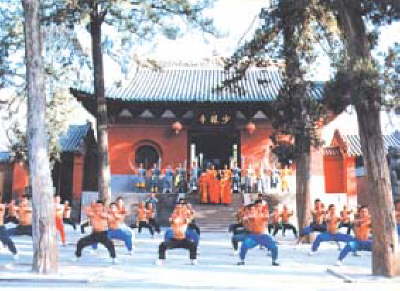 Das Shaolin Kloster liegt am Westfuß des Songshan-Gebirges. Der Bau des Klosters begann im Jahre 495. Im Jahre 527 ließ sich der indische Mönch Bodhidarma hier nieder und begründete den Zen-Buddhismus. Es entstand das erste zenbuddhistische Kloster Chinas. Anfang des 7. Jahrhunderts retteten 13 Mönche des Shaolin-Klosters, welche die Kampfkunst gut beherrschten, den Tang-König vor seinen Verfolgern, wofür sie später vom Kaiser belohnt wurden. Das Kloster genoß als "das erste Kloster unter dem Himmel" großes Ansehen. Und das Shaolin Kung-Fu, eine Art der chinesischen Kampfkunst, welche die Mönche des Shaolin-Klosters pflegten, entwickelte sich schnell und wurde schließlich landesweit bekannt. Man unterscheidet insgesamt über 100 Kampfarten: Kämpfe mit und ohne Waffen, Kämpfe zu Pferde, das leichte und das harte Qigong usw.